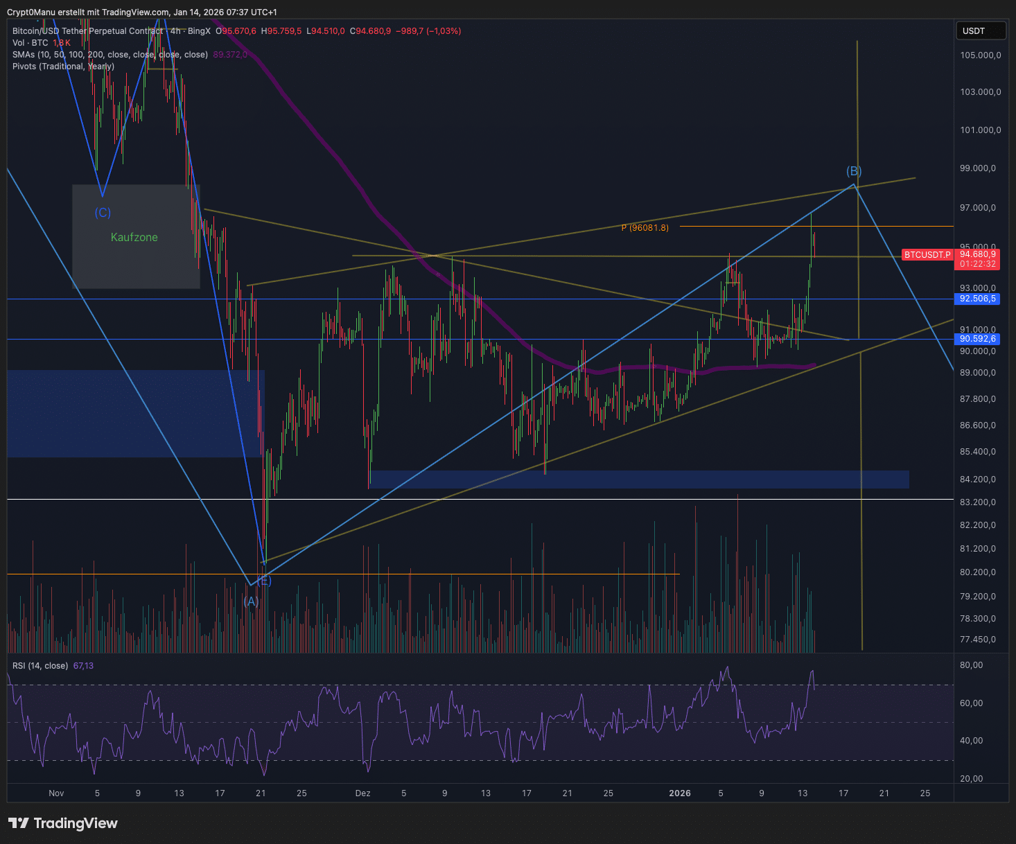 Dieser Move wirkt weiterhin eher als Short Liquidation, als das dass ein nachhaltiges Breakout ist. Im RSI sind wir bereits massiv übergekauft, nur die Funding Rates sind noch teilweise im negativen Bereich.