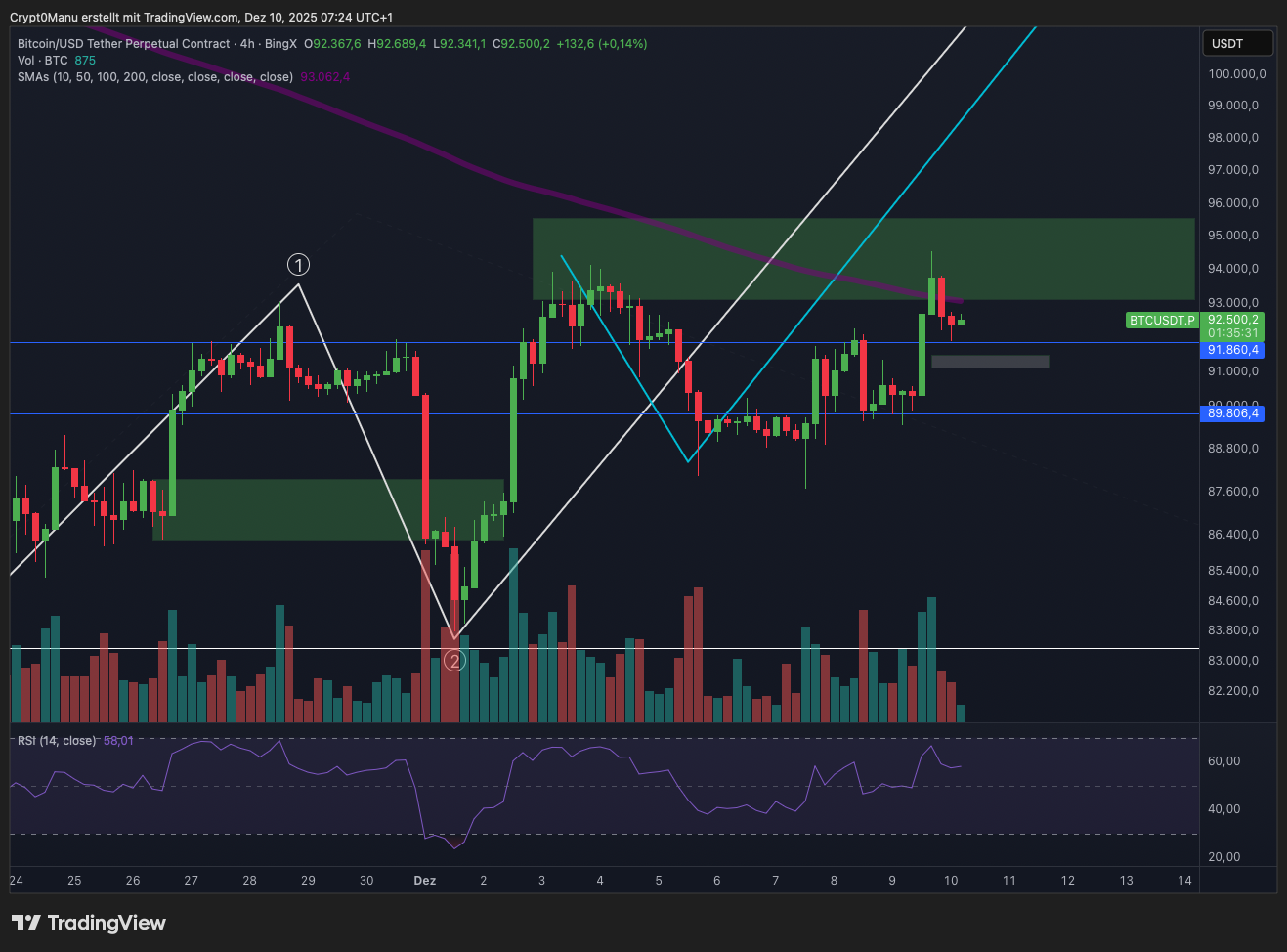 Die Analysten befürchten, dass dies erst einmal die letzte Zinssenkung für die nächsten Monate sein wird. Trotzdem pumpen Bitcoin & die Altcoins stark! Derzeit traden wir bei ca. 92.500 USD und somit etwas tiefer als gestern.