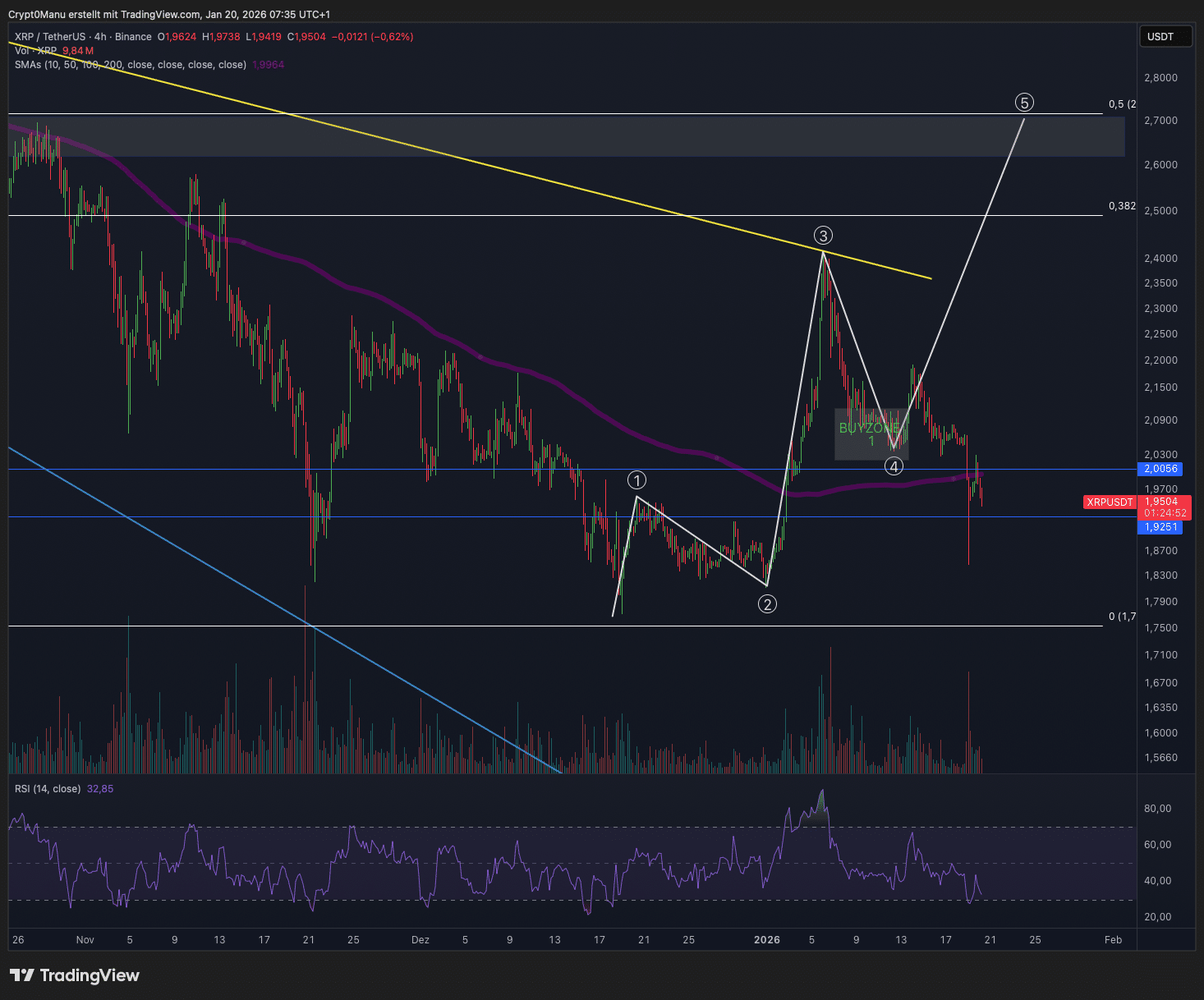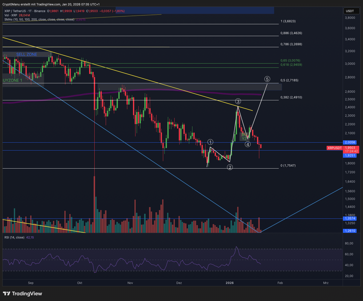 Derzeit traden wir wieder unter der wichtigen 2 USD Marke bei ca. 1,95 USD. in den letzten Tagen haben wir massive Abverkäufe, vor allem im Altcoin Sektor, gesehen. Die geopolitische Unsicherheit wächst weiter.